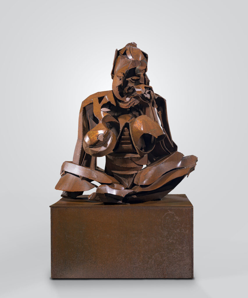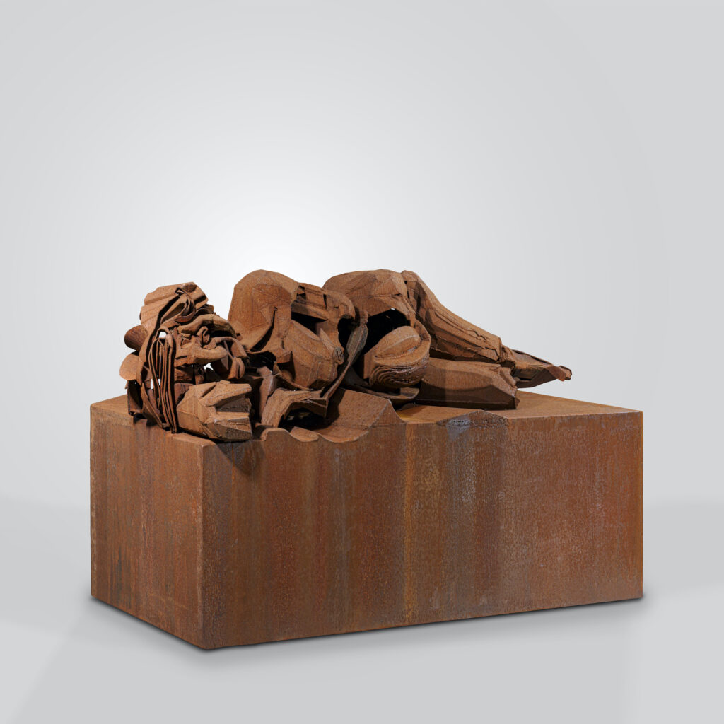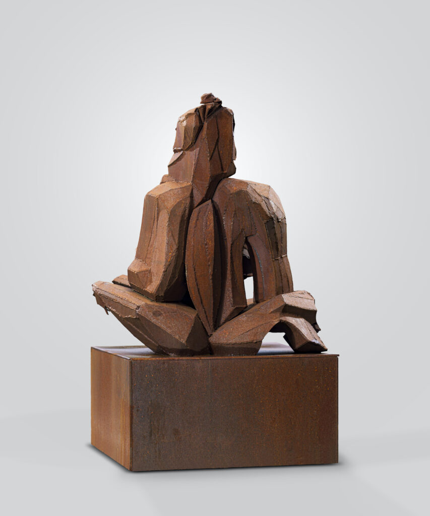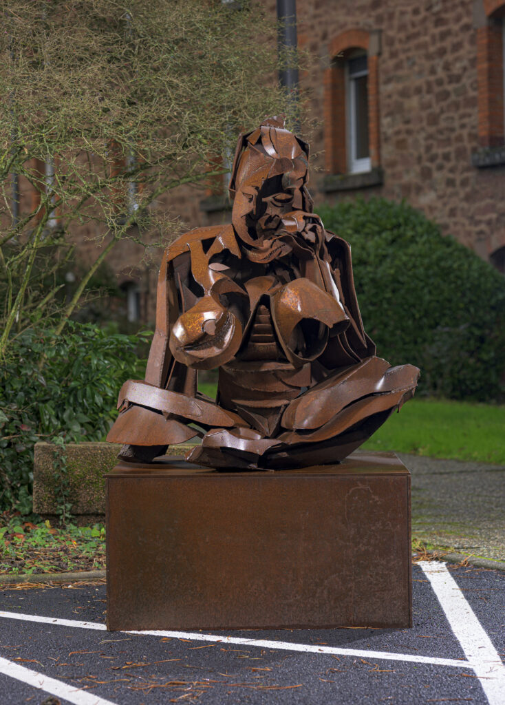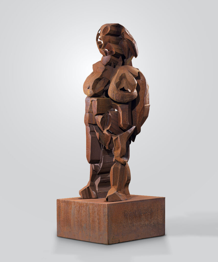 L’acier brillant confond la sculpture avec le ciel, l’acier rouillé la ramène sur la terre, au milieu des humains et de leur temps. Il parle du travail, de la technique, de l’industrie humaine, de la pensée qui construit les formes.